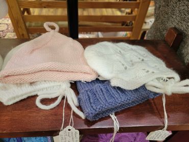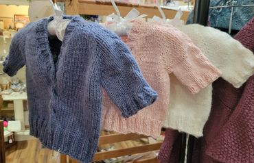 My knitting has changed some since joining the Schoharie Mercantile to reflect local needs. In addition to shawls, hats and cotton cloths, you will also find newborn baby sweaters and hats for gifting.
